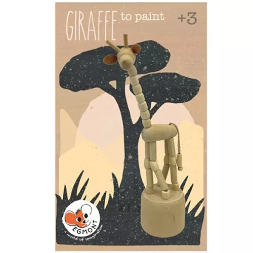 Een houten giraffe om zelf te beschilderen van het Belgische merk Egmont Toys. Bij het creatieve speelgoed zijn zes kleuren verf en een penseel inbegrepen om het push-up speelfiguur tot leven te brengen.