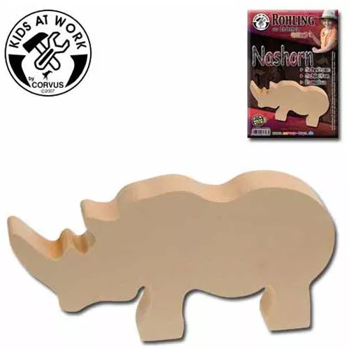 De kleine houtbewerker kan de neushoorn verder afwerken door te kerven, te slijpen en te schilderen. Zo krijgt de neushoorn een persoonlijk karakter.