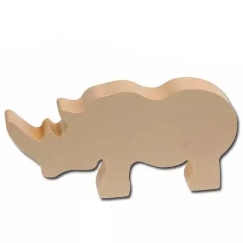 De houten neushoorn is ongeveer 15×7,5×2 cm groot.