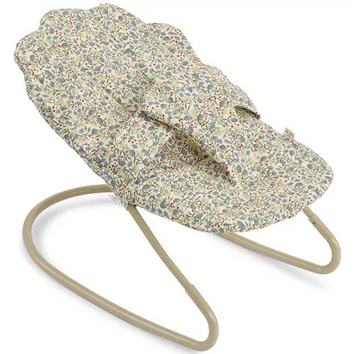 Een comfortabele poppenstoel voor de kleine poppenmoeder om haar babypop in te verzorgen. Met deze wipstoel ‘Doll Bouncer – Jardin de Fleurs’ van het Deense merk Konges Sløjd kan de pop gezellig bij de poppenmoeder in de buurt zijn en kan daarin gewiegd worden en slapen.