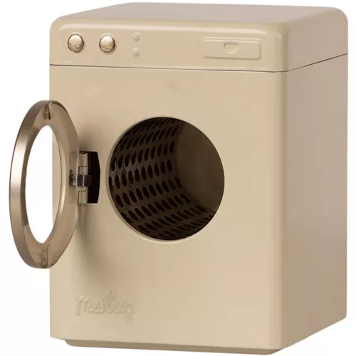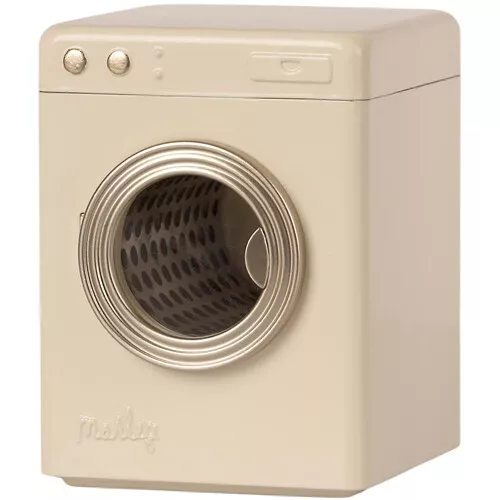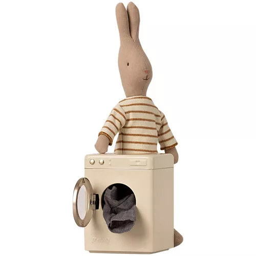De roomwitte wasmachine past in het Maileg poppenhuis.