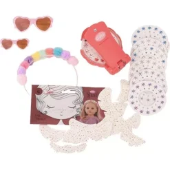 Een oudroze poppenkruippakje met een stippen en een bijpassende grijze haarband van het Spaanse merk Paola Reina. Hierin is de pop behaaglijk gekleed om mee te nemen of voor een slaapje.