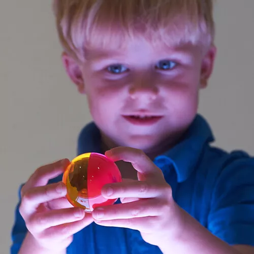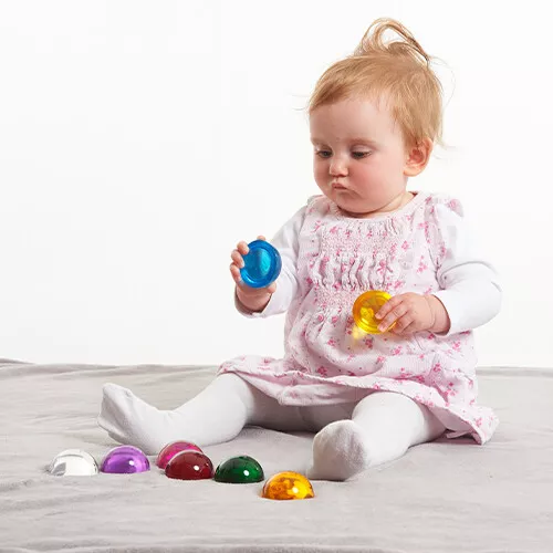De gladde speelgoedbollen voelen interessant aan en zijn dankzij het transparante materiaal fascinerend om mee te spelen. Ook hebben ze een vergroting van vier tot vijf keer om objecten te onderzoeken en van dichtbij te bekijken.